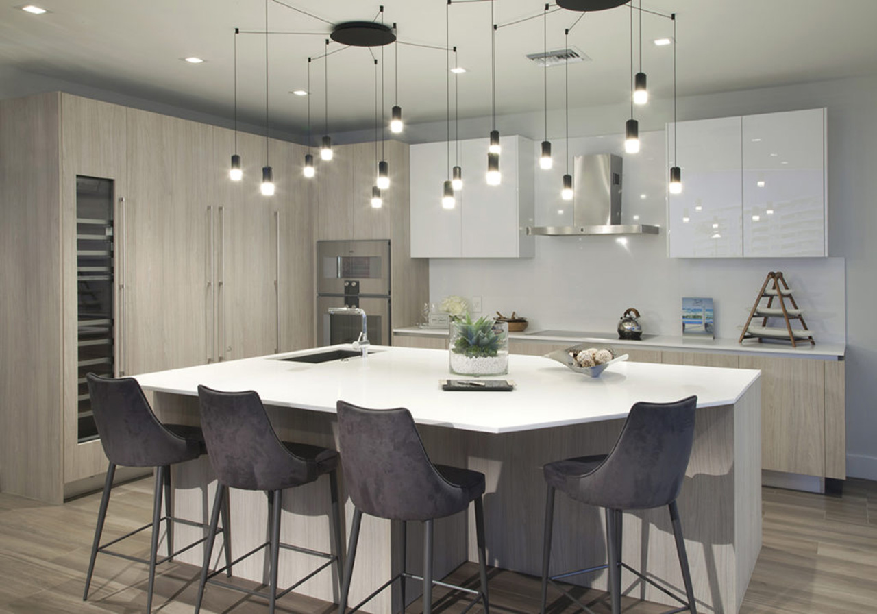 • European-style kitchens with Italian cabinetry, quartz countertops, Hansgrohe fixtures and Gaggenau appliances