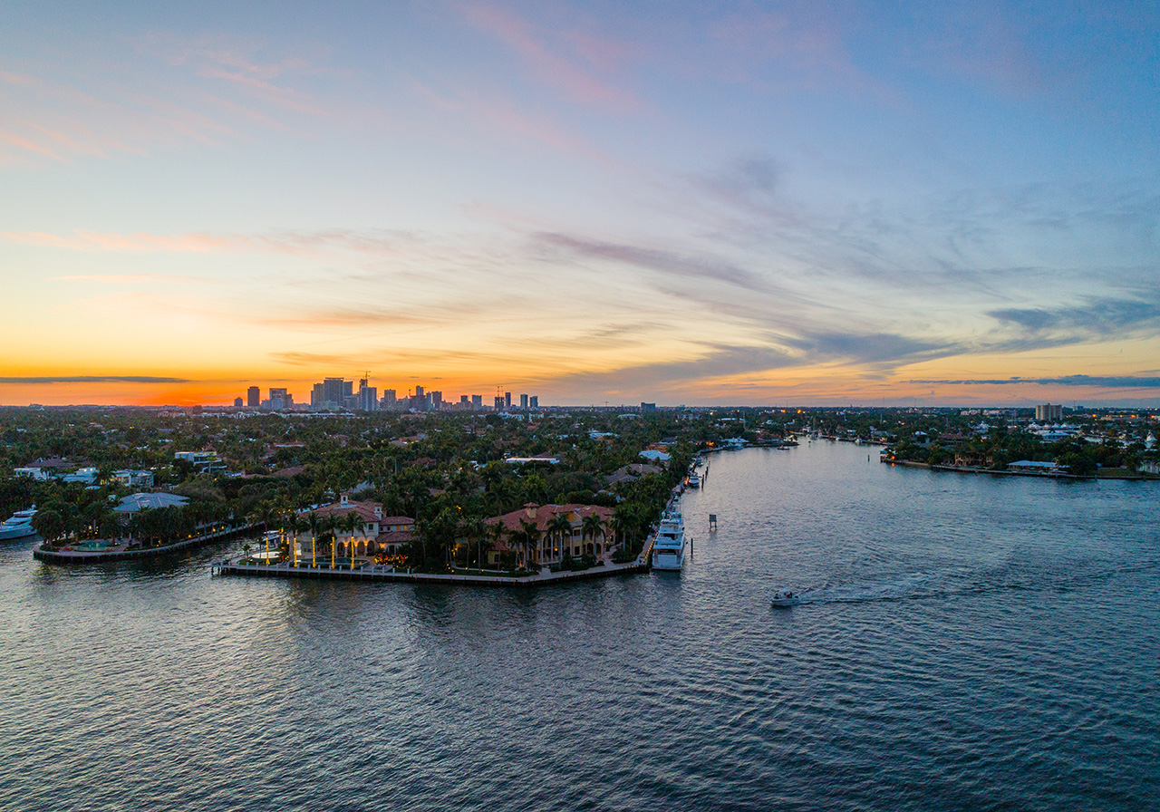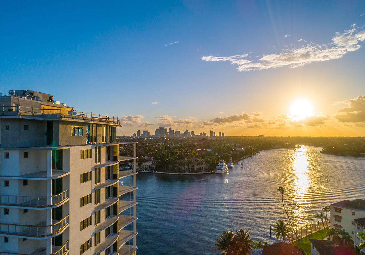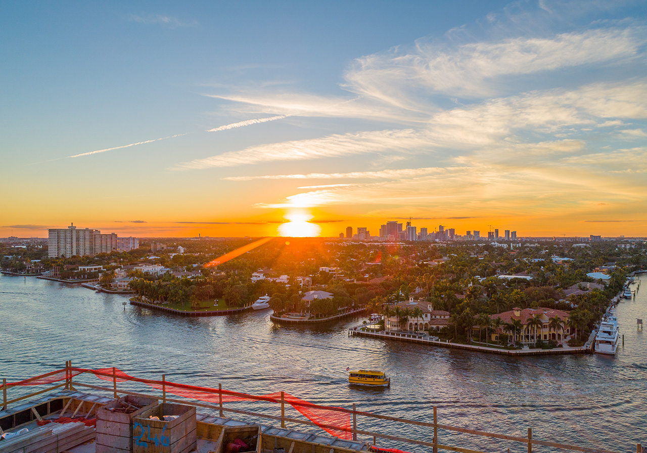 Sunset Aerial Rooftop View of 321 at Water’s Edge – Under Construction