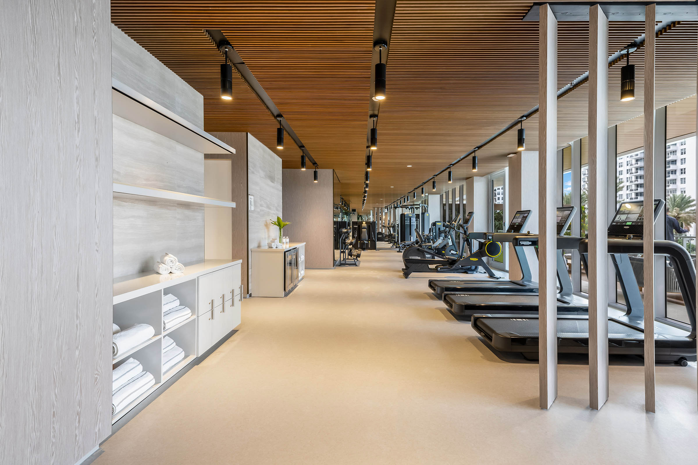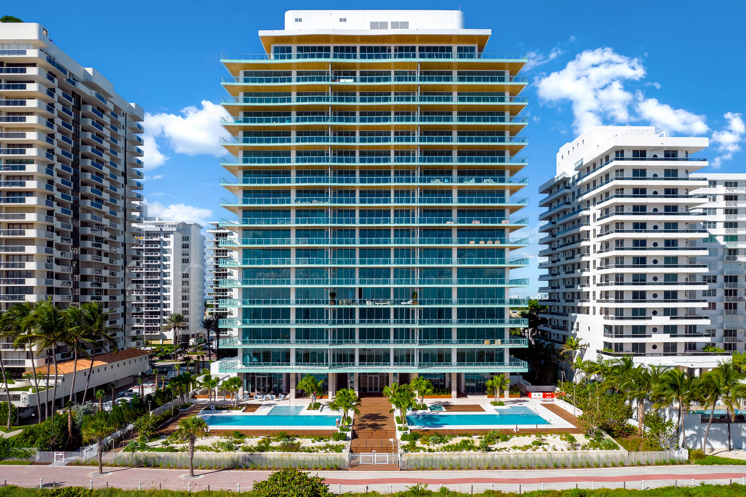 57 Ocean in Miami Beach offers extraordinary amenities and services including direct beach access, 220 linear feet of beach and beach walk, 2 oceanfront infinity-edge pools with relaxing pool ledge loungers and cabanas, poolside bar/lounge, poolside and beachside concession services, snack/juice bar, oceanfront Wellness Garden, Wellness Pavilion Spa featuring an indoor thermal suite with aromatherapy saunas, steam rooms, showers and ice fountains, private indoor treatment suite, private outdoor treatment cabanas, outdoor vitality tub and outdoor relaxation/meditation area, lush landscaping and vertical gardens throughout, an elegant flow-through lobby with unobstructed views of the Atlantic Ocean, sunlit library overlooking the ocean, club room with professional-grade chef’s kitchen, summer kitchen pavilion with BBQ grill area, state-of-the-art fitness center with Technogym equipment, personal training area for Pilates and yoga, innovative MyIsle by MyEquilibria outdoor training equipment, kid’s activity room, on-site concierge, 24-hour valet parking, 24-hour security and on-call personal fitness trainers, spa treatments specialists and private chefs.