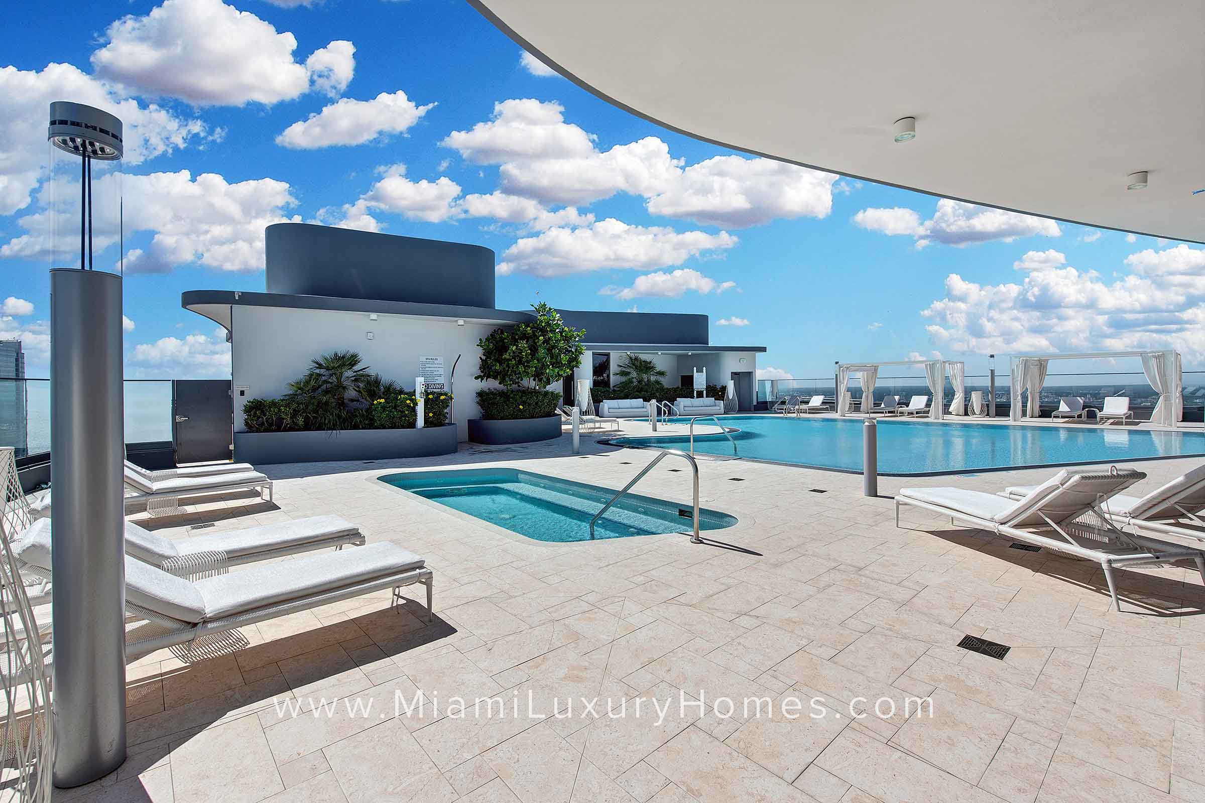 Brickell Flatiron is a 64-story luxury condo development featuring 548 lavish condo units ranging in size from 740 – 2,650 square feet. Each unit offers an over-sized, elliptical terrace with absolutely stunning panoramic views of the Miami skyline and/or Biscayne Bay. Residents will also enjoy the exceptional amenities at Brickell Flatiron including a rooftop pool with 360º of entirely unobstructed water and city views, an exclusive rooftop spa and fitness center, private movie theater, children’s play area, game room and ground-floor ultra-posh shopping and restaurants.
