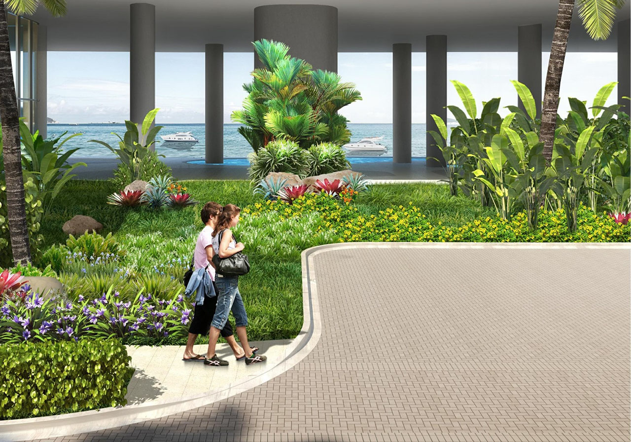 Rendering of Walkway and Landscaping at Island Bay