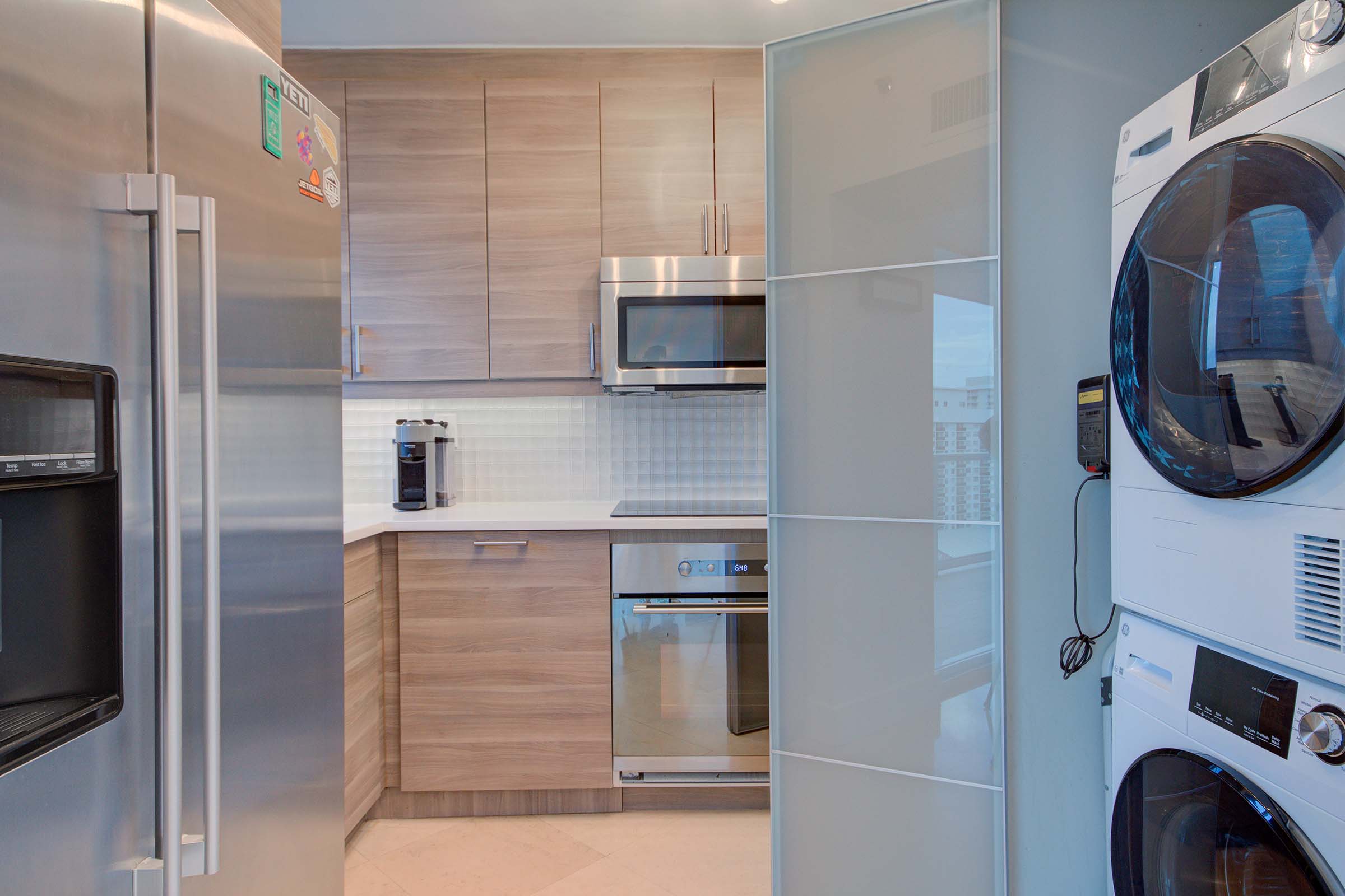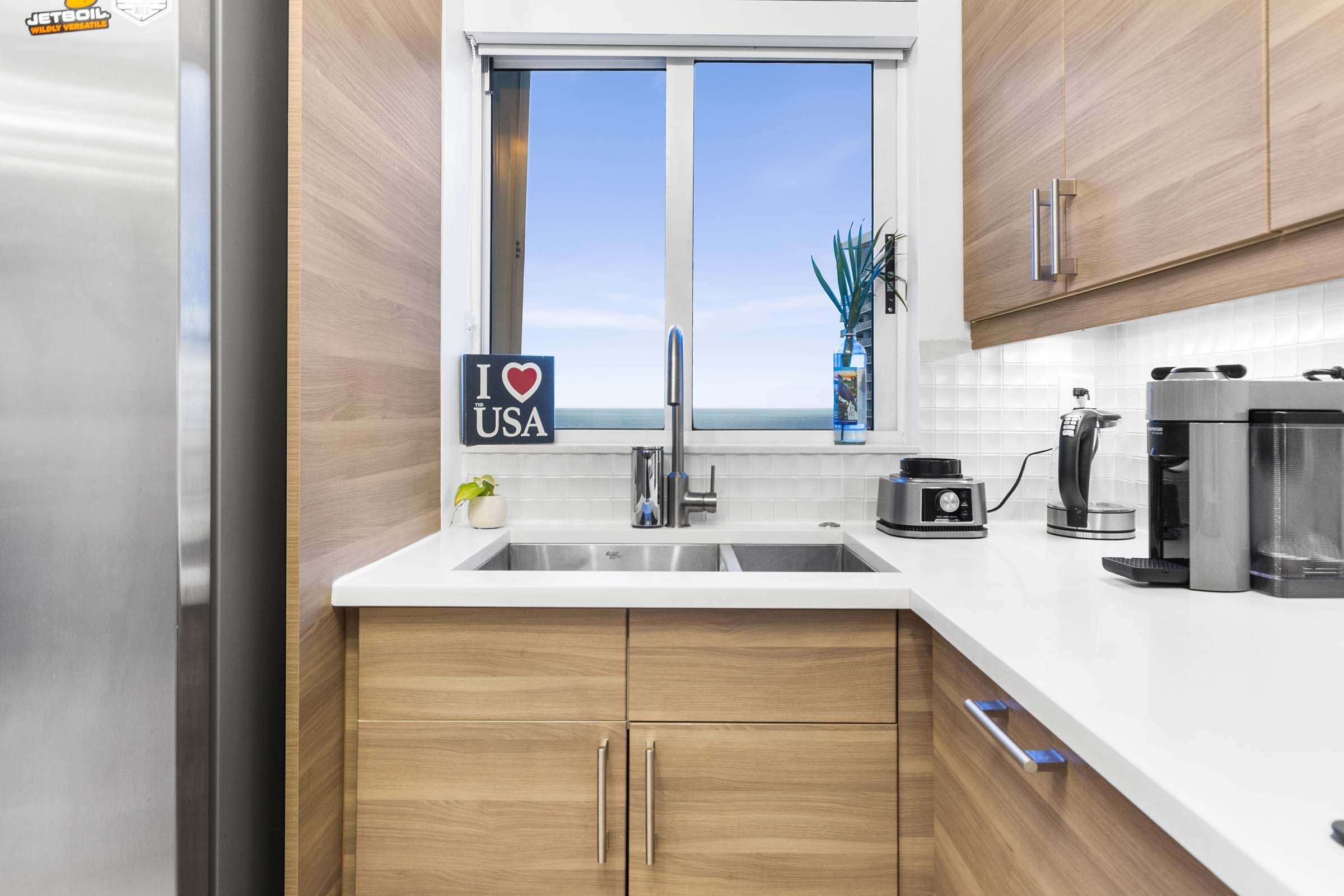 From the private elevator to the ample water views from 2 terraces, the property has been thoroughly renovated top to bottom. Floor-ceiling windows and doors allow ample light and with 1,180 square feet, there is a spacious layout.