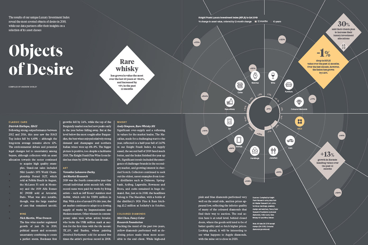 - Although our Luxury Investment Index dipped slightly in 2019, committed collectors continue to pay record prices for the most wanted asset classes. Additionally, philanthropy is arguably the ultimate passion investment and concern for the health of the planet is increasingly driving UHNWI endeavors.