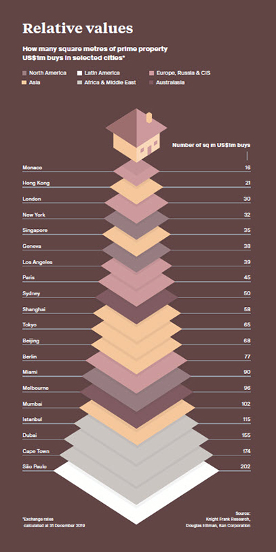 - 78 of the 100 prime residential locations we track saw positive or flat price growth in 2019. Miami registered a 2.3% overall growth.