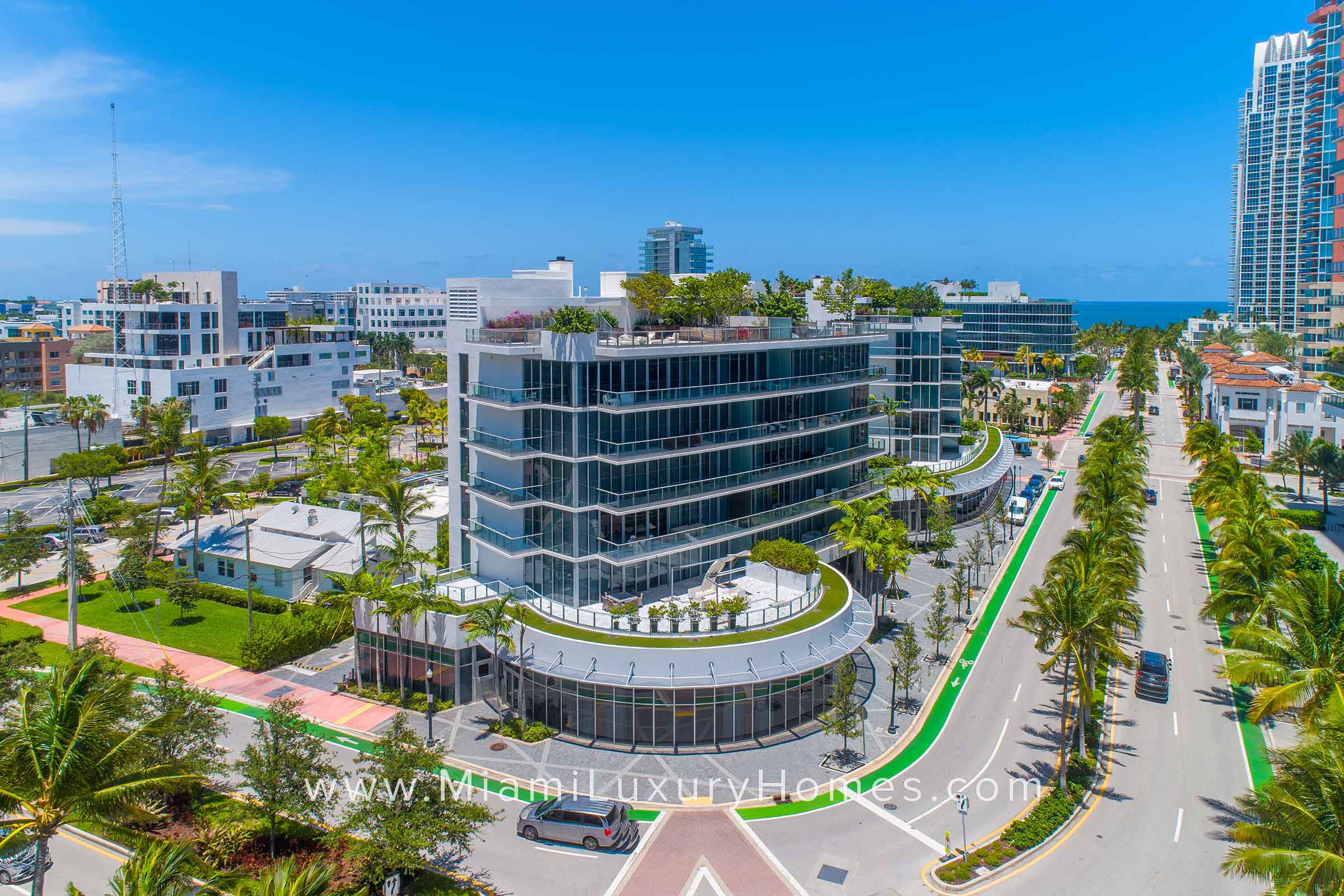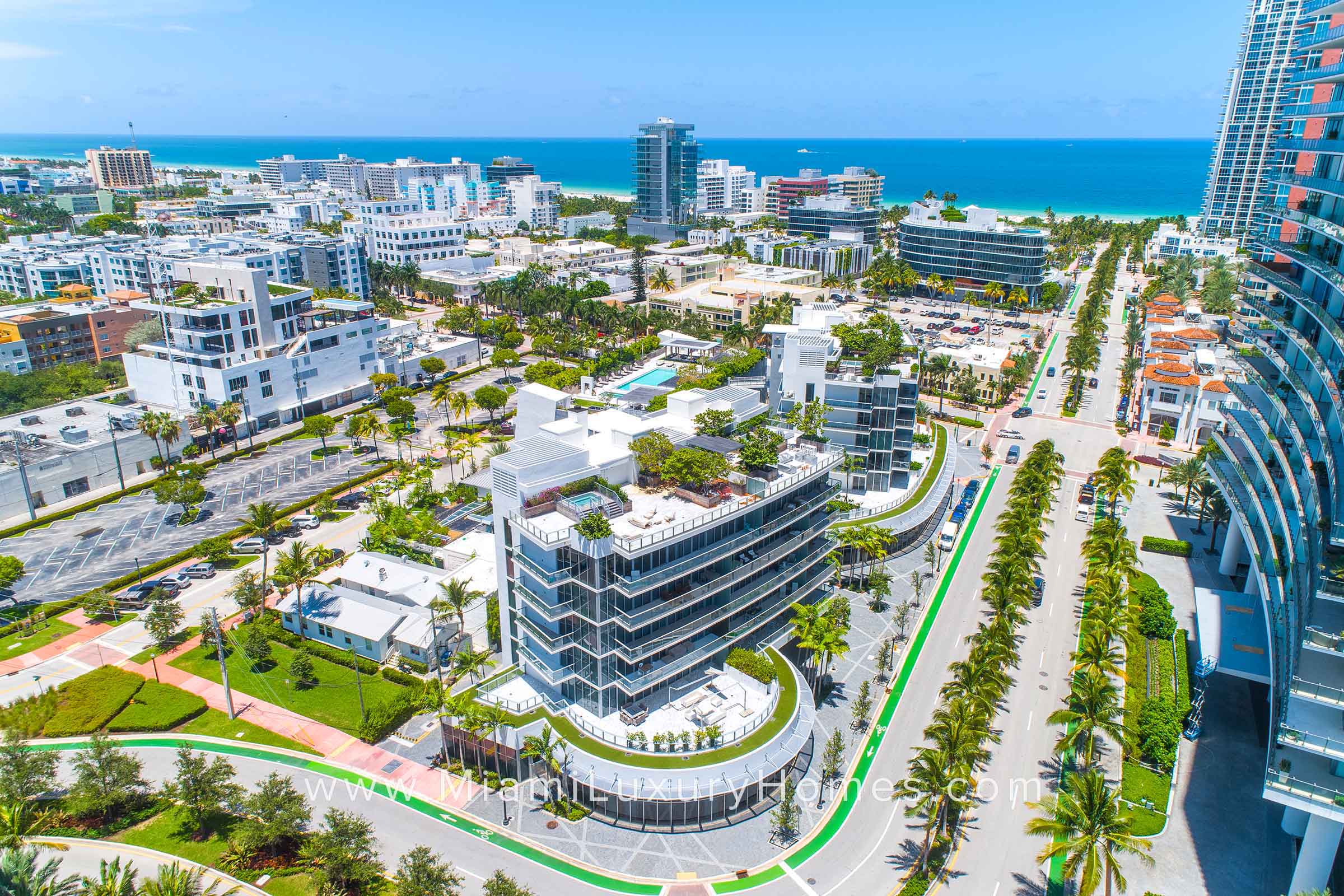 Marea is a boutique, 7-story condo building offering 30 residences, including 2 urban villas. Residences at Marea offer European-style kitchens and bathrooms, floor-to-ceiling windows and sliding glass doors and expansive terraces with partial water and city skyline views. Amenities at Marea include a grand lobby custom designed by internationally-acclaimed Yabu Pushelberg, rooftop pool deck beautifully landscaped by renowned Swiss landscape architect Enzo Enea with private cabanas, Zen garden, state-of-the-art fitness center with sauna, VIP access to nearby exclusive beach club offering cabanas and beach services, concierge/butler services and valet parking.