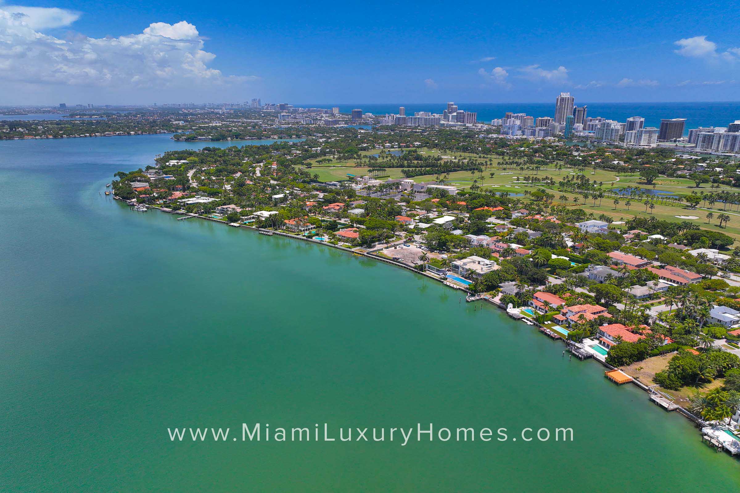 North Bay Road runs north and south along the western side of Miami Beach, and is one of the wealthiest communities in South Florida displaying stunning mansions and magnificent estate homes, accessorized with lavish furnishings, and complete with the ultimate in luxury amenities. These include fountains, resort-style pools, koi ponds, spas, Jacuzzi, fitness centers, billiards rooms, fireplaces, theaters, wine cellars and spacious gourmet kitchens with top-of-the-line appliances.