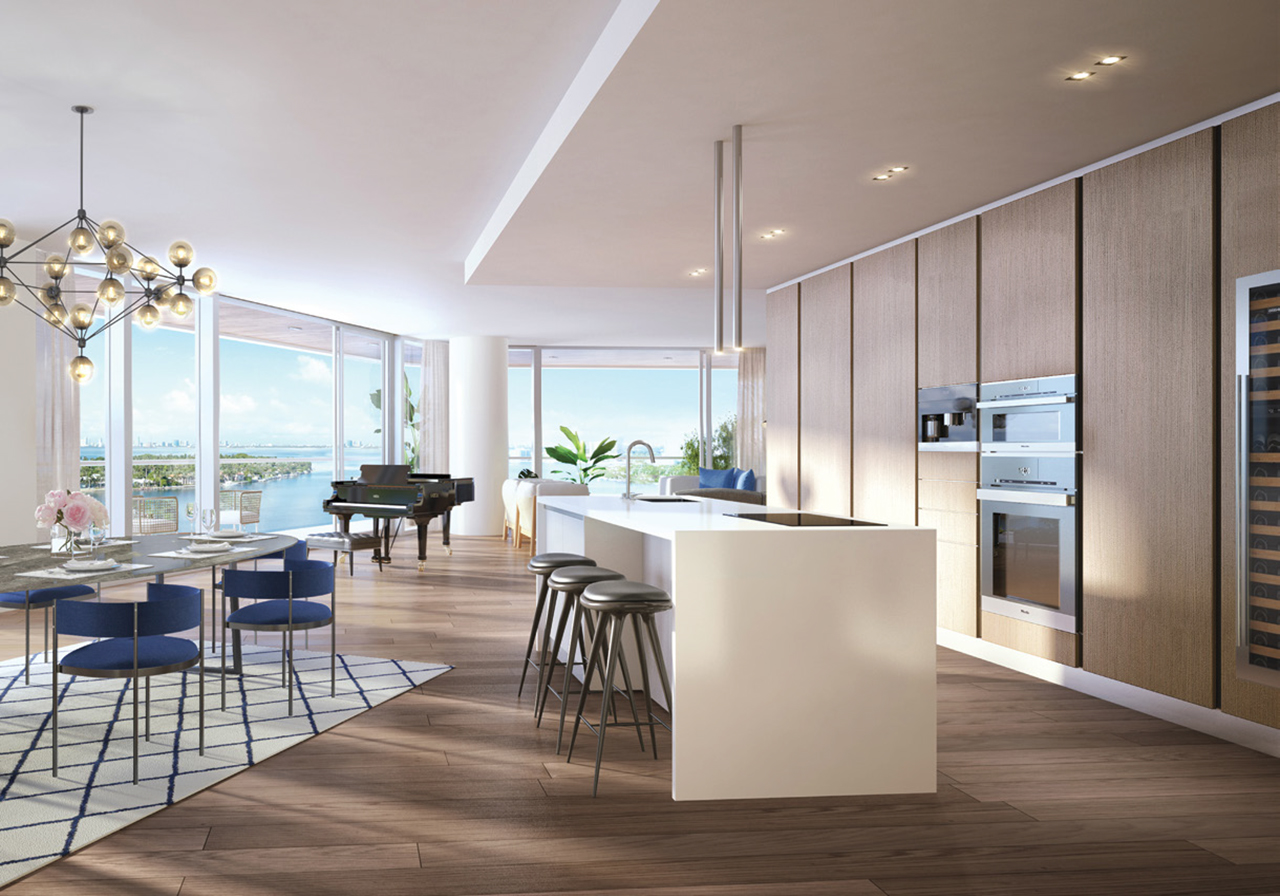 Monaco Yacht Club & Residences consists of 39 luxury condos including 37 residences and 2 half-floor penthouses with interiors ranging in size from 918 to 2,844 square feet offering 1, 2, 3 and 4-bedroom layouts with expansive outdoor terraces offering panoramic ocean, bay and city skyline views. Condos at Monaco feature Smart Building Home Automation System by Crestron, 10 to 11-foot ceilings, floor-to-ceiling impact-resistant windows/sliding glass doors, European Arrigoni wide-plank wood flooring, Boffi Italian kitchens, spa-inspired bathrooms designed by Piero Lissoni and large walk-in closets.