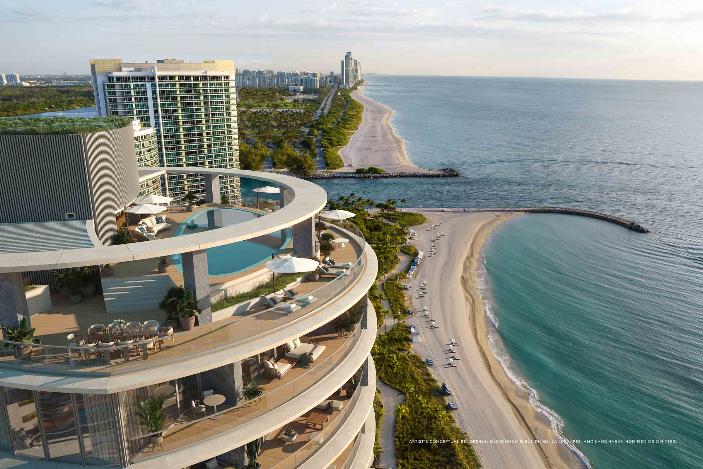 Terraces up to 12 feet deep offer direct views of the Atlantic Ocean and Biscayne Bay