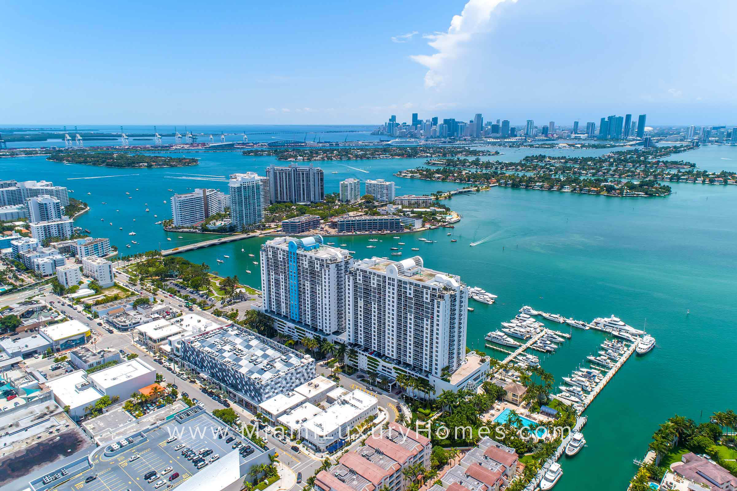 Sunset Harbour is a waterfront condo development situated along Biscayne Bay in the South Beach neighborhood of Miami Beach consisting of 2 condo towers, the North Tower and the South Tower. Sunset Harbour collectively is comprised of 455 condo units offering 1, 2 and 3-bedroom layouts with floor-to-ceiling windows/sliding glass doors, fully-equipped kitchens and private balconies overlooking Biscayne Bay and the Downtown Miami skyline. Amenities at Sunset Harbour in South Beach include a private marina with 125 boat slips, bay walk, 3 heated swimming pools, outdoor hot tub, gym with cardio and weightlifting equipment, 2 conference room, 2 game rooms, 2 party rooms, valet parking and 24-hour security.