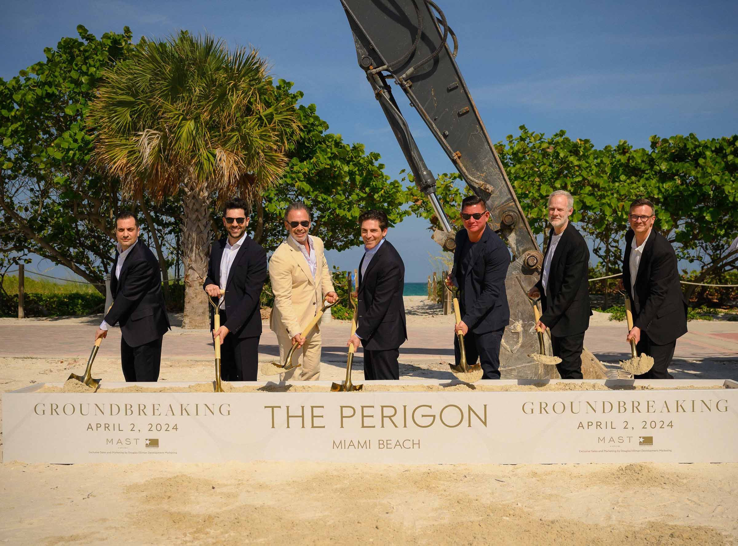Just five months after the unveiling of their luxurious preview gallery, MAST Capital and Starwood Capital have broken ground on The Perigon Miami Beach, their much-anticipated ultra-luxury beachfront development at 5333 Collins Avenue. The project’s developers gathered on the sand yesterday to toast to their progress and welcome the new elegant development with a handful of elite brokers and clients.