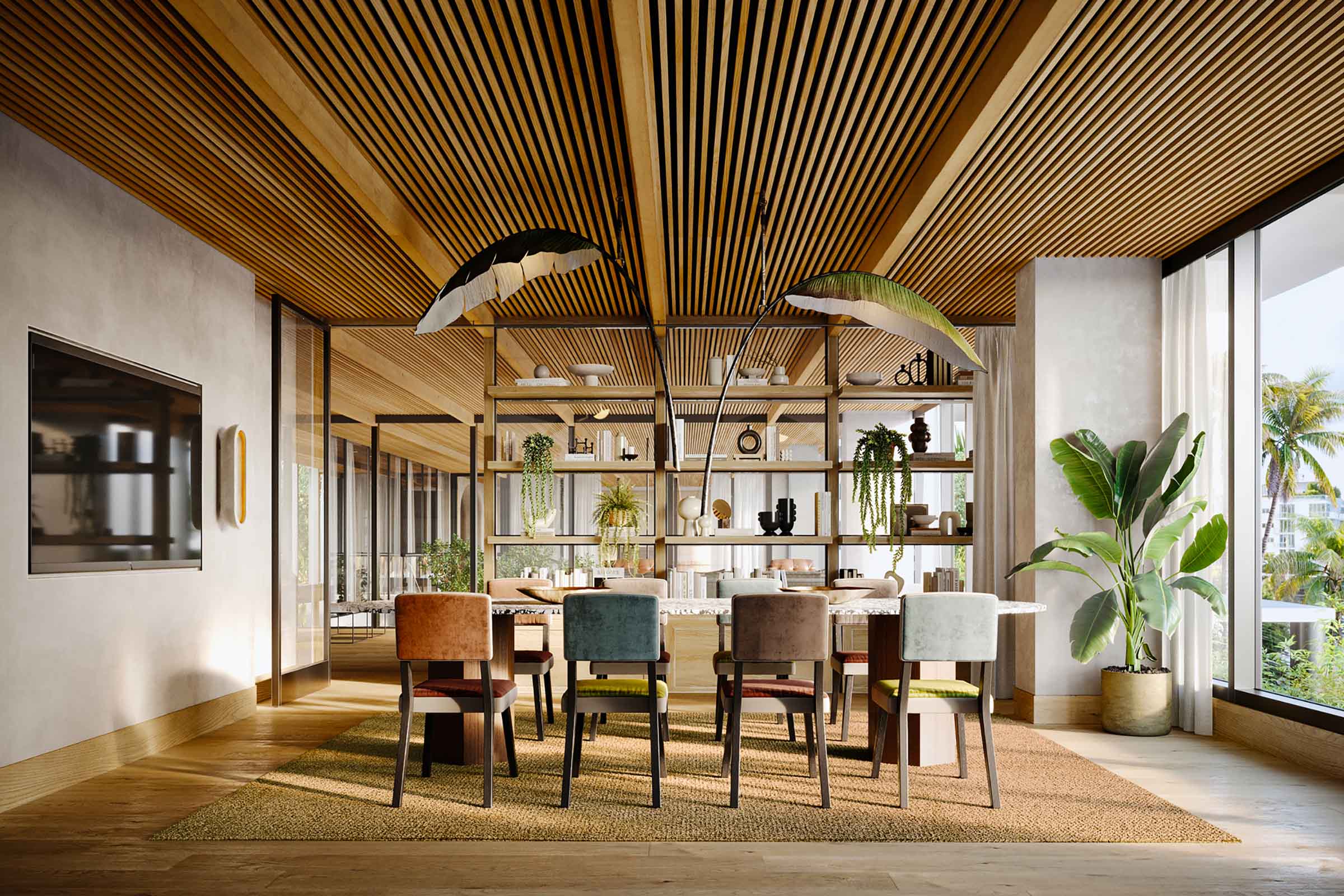 Inside the residences, owners will find many wellness-focused features including meditation nooks, integrated yoga mats, and the primary bathrooms have therapeutic tubs and rain showers. The kitchens boast workstation sinks and faucets with an array of water options.